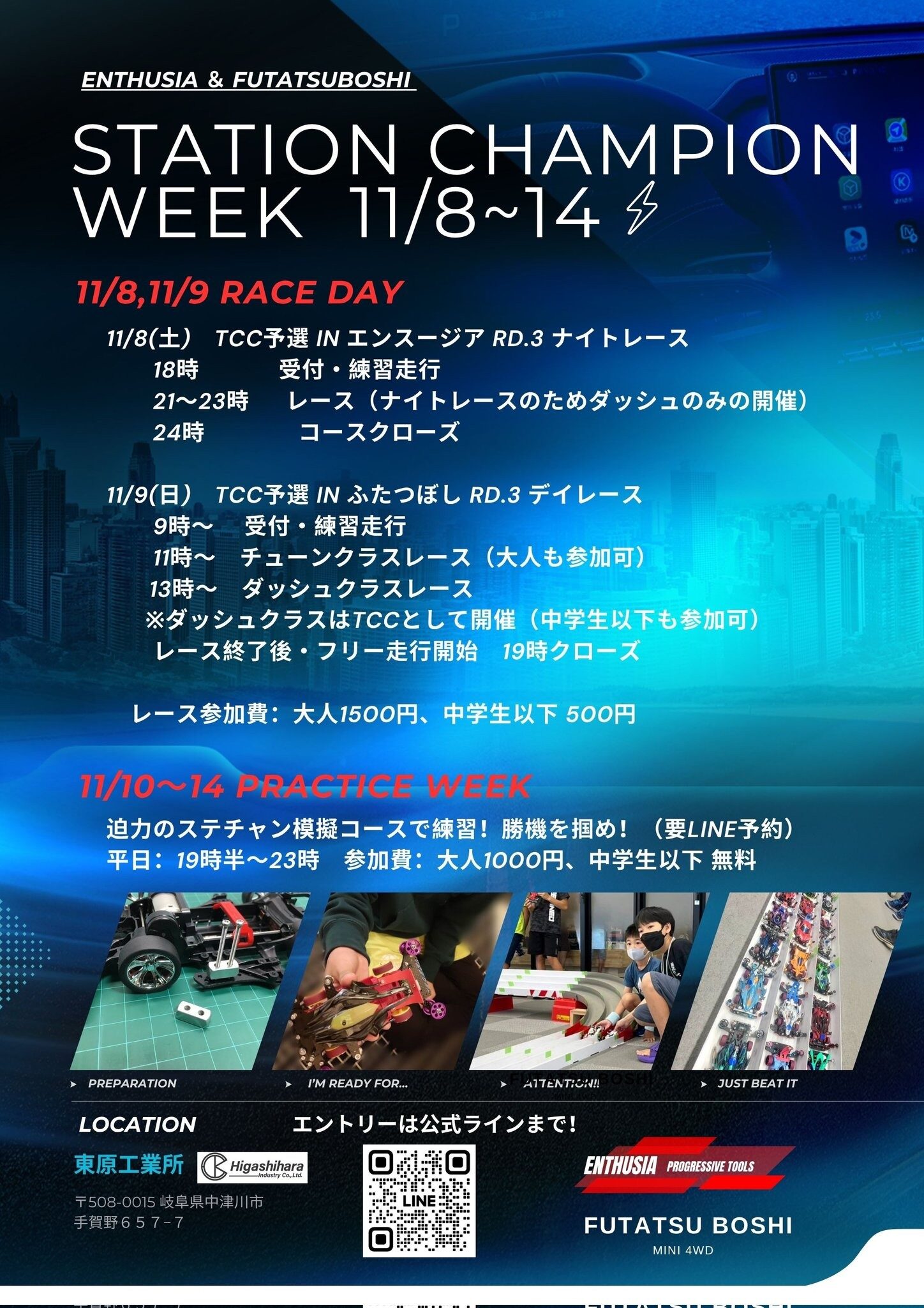 エンスージア ・ ふたつぼし【 2025/11/8(土) 11/9(日)】TCC予選大会 のご案内
