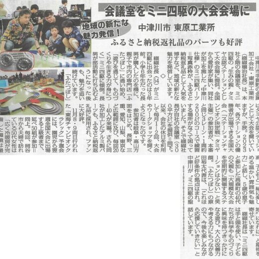 恵峰ホームニュース中日新聞内のローカル記事に弊社会議室のミニ四駆会場を取り上げて頂きました。